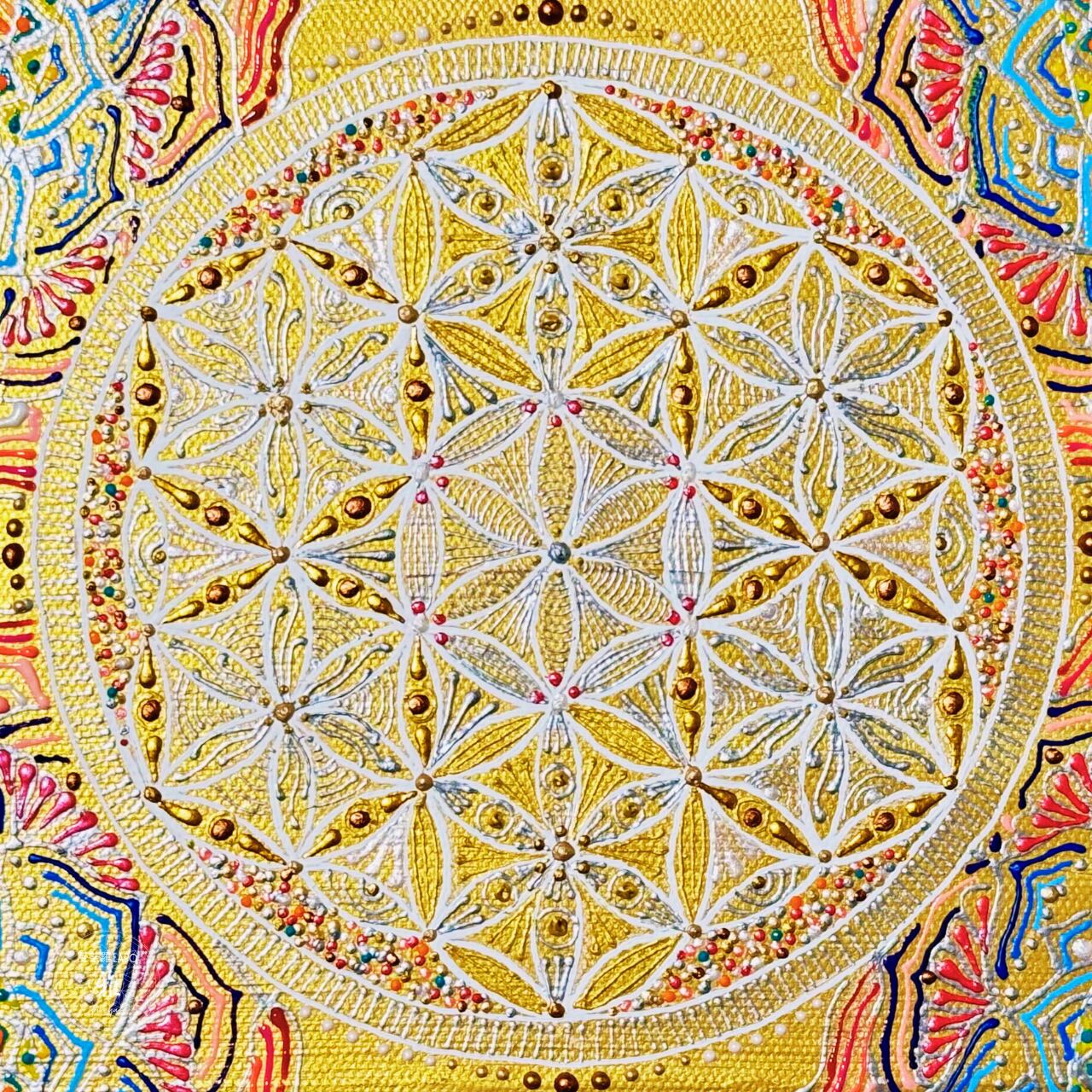 「Abundance」フラワーオブライフ:SMサイズキャンバス アクリル画
