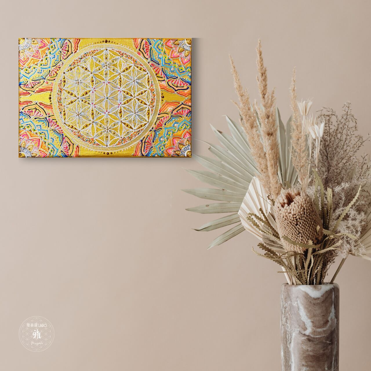 「Abundance」フラワーオブライフ: SMサイズキャンバス アクリル画