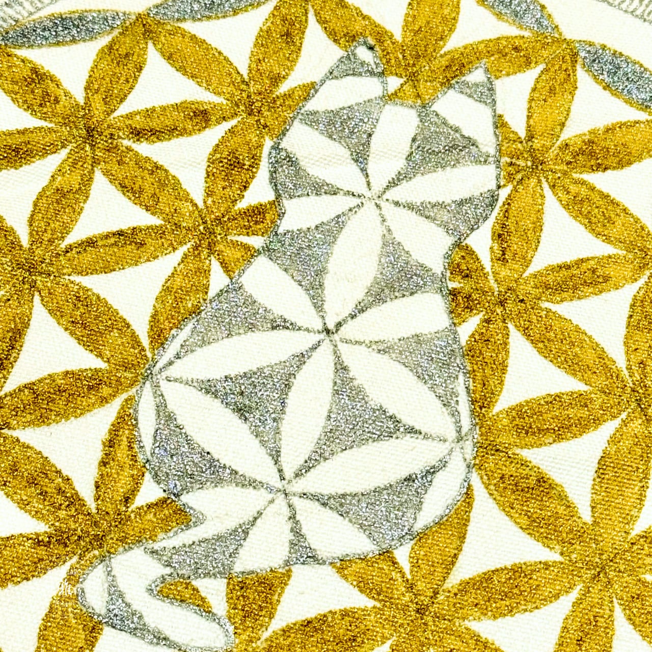 神聖幾何学のフラワーオブライフ、中心に猫のシルエットを描いています。