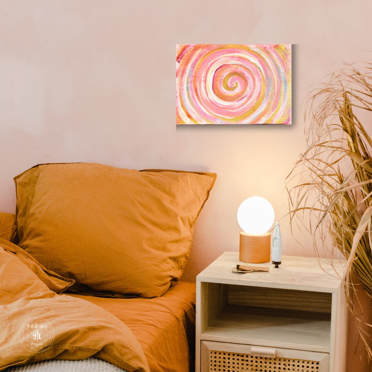 神聖な「Womb(子宮)」という場所をイメージし、ポジティブなエネルギーの渦を描いています。